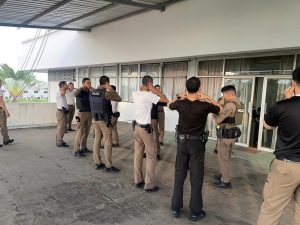 ปฏิบัติหน้าที่สายตรวจ ปฏิบัติหน้าที่เป็นครูฝึก โดยมีกำลังเจ้าหน้าที่ตำรวจสายตรวจ สภ.บางกรวย เข้ารับการฝึกทบทวนประจำสัปดาห์ในหัวข้อระดับการใช้กำลัง (Use of force) และถอดบทเรียนของเคสตัวอย่างที่เจ้าหน้าที่ตำรวจในการใช้กำลังในการระงับเหตุ