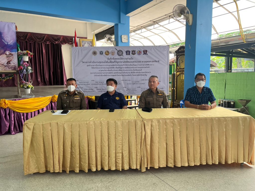 ประธานในพิธี ได้จัดให้มีการลงนามในบันทึกข้อตกลง (MOU) เพื่อประสานความร่วมมือระหว่างหน่วยงานเพื่อแก้ปัญหายาเสพติดในพื้นที่เป้าหมาย