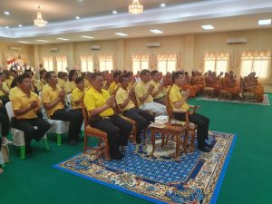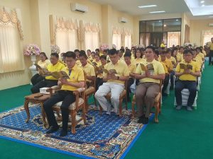 พร้อมด้วยข้าราชการตำรวจ สภ.บางกรวย เข้าร่วมพิธีเจริญพระพุทธมนต์เฉลิมพระเกียรติ ถวายพระพรชัยมงคลแด่ พระบาทสมเด็จพระเจ้าอยู่หัว เนื่องในโอกาสวันเฉลิมพระชนมพรรษา 6 รอบ 28 กรกฎาคม 2567 ณ วัดบางอ้อยช้าง ต.บางสีทอง อ.บางกรวย จ.นนทบุรี
