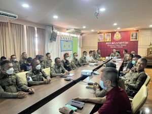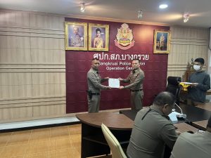 พร้อมข้าราชการตำรวจสภ.บางกรวย เข้าร่วมประชุมประจำเดือน ที่ห้องประชุมชั้น 3 สภ.บางกรวย