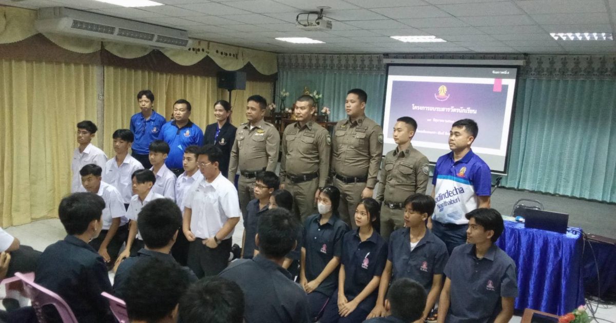 พร้อมชุดมวลชนสัมพันธ์และจิตอาสา สภ.บางกรวย เป็นวิทยากรบรรยายให้ความรู้ เนื่องในโอกาสเปิดอบรมหลักสูตรสารวัตรนักเรียน โดยมีผู้อำนวยการโรงเรียน คณะครู และนักเรียน ร่วมรับฟังการบรรยาย จำนวน 50 คน ณ โรงเรียนบดินเดชา(สิงห์ สิงหเสนีย์) นนทบุรี ต.วัดชลอ อ.บางกรวย จ.นนทบุรี