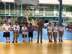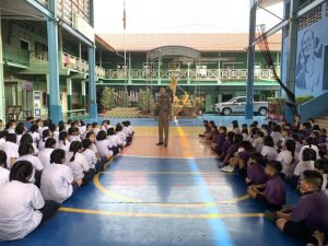ให้ความรู้เกี่ยวกับสารเสพติดและความปลอดภัยผู้ใช้ถนน ที่ โรงเรียนวัดสำโรง (หิรัญราษฎร์ภักดีวิทยา)